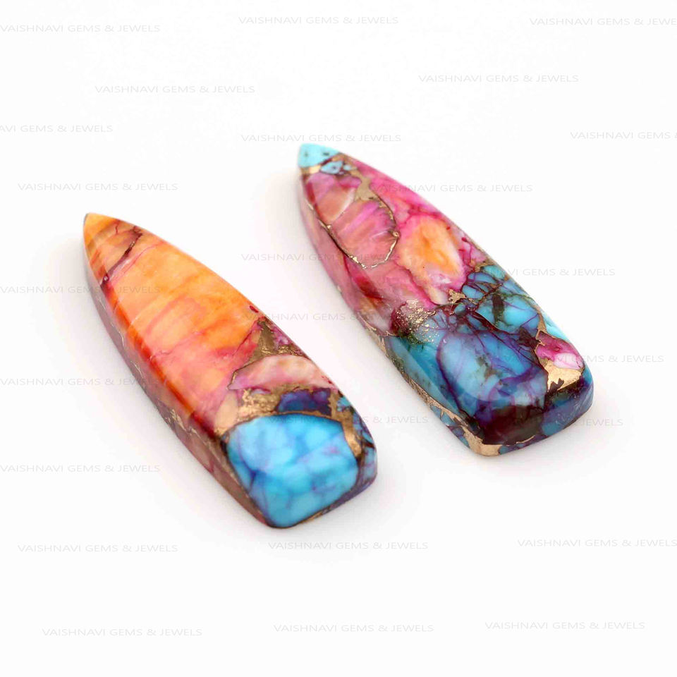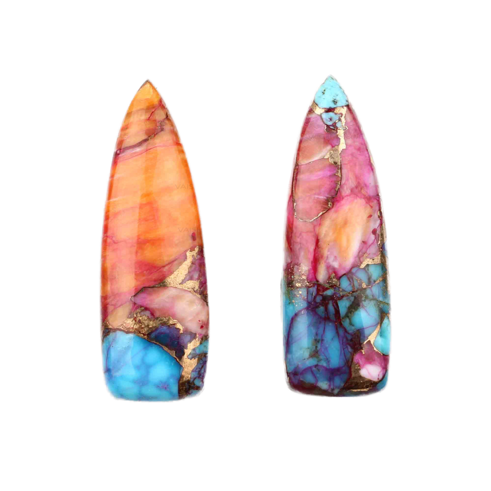 Product Name:Natural Orange Dahlia Copper Turquoise Long Trillion Cabochon