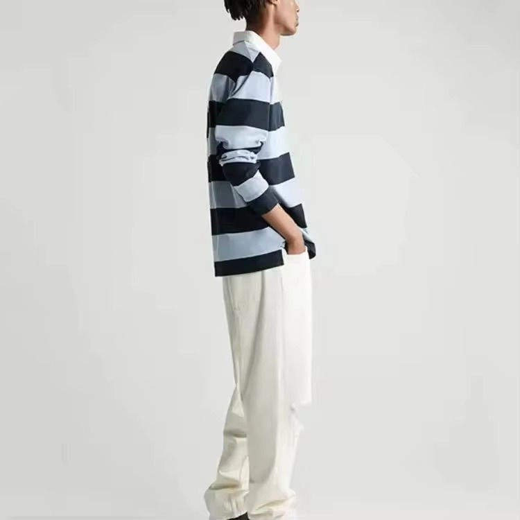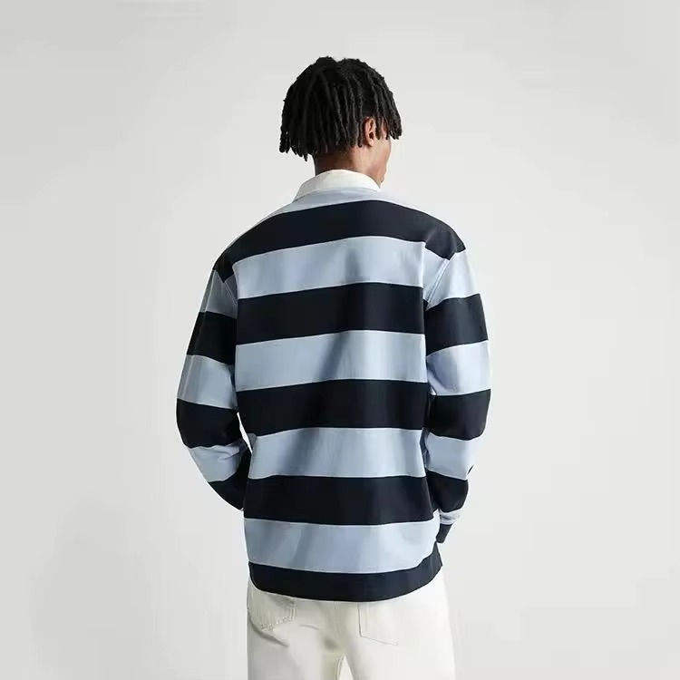 Fournisseur en gros de polos de rugby rayés en pur coton, polos à col polo à manches longues pour hommes, t-shirts de rugby 100% coton personnalisés