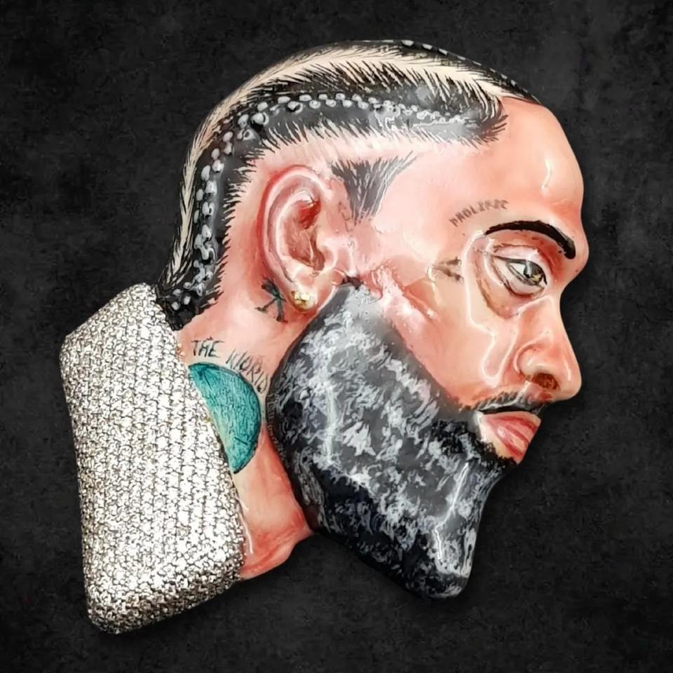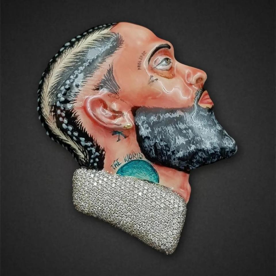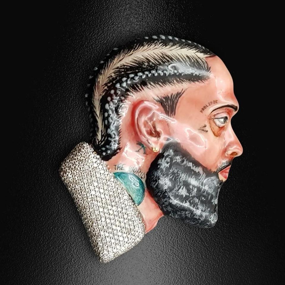 Fournisseur en gros de pendentifs en émail personnalisés 3D de rappeur, glacés, personnalisés, en moissanite, en acier inoxydable plaqué rhodium, disponibles pour l'exportation