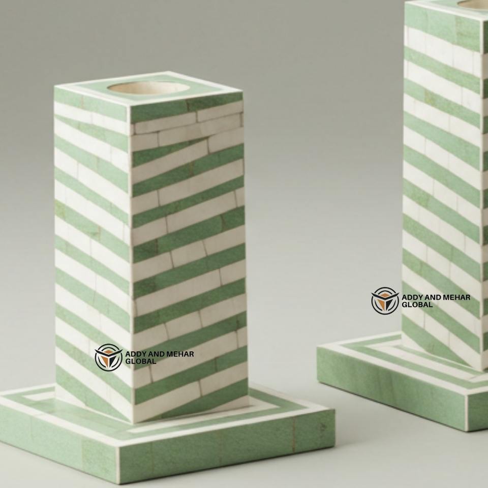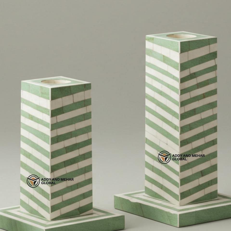 Fourniture en gros Ensemble de bougeoirs artisanaux en incrustation d'os vert pour la décoration de la maison et de l'hôtel disponibles pour l'approvisionnement en gros