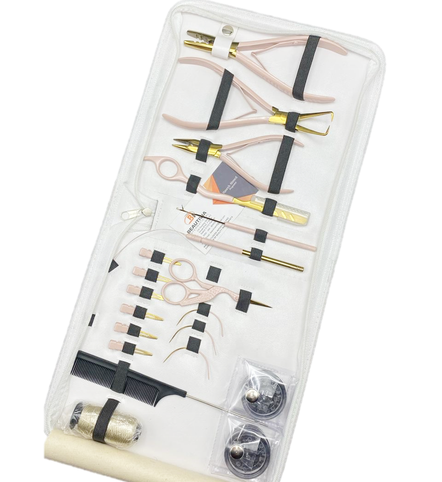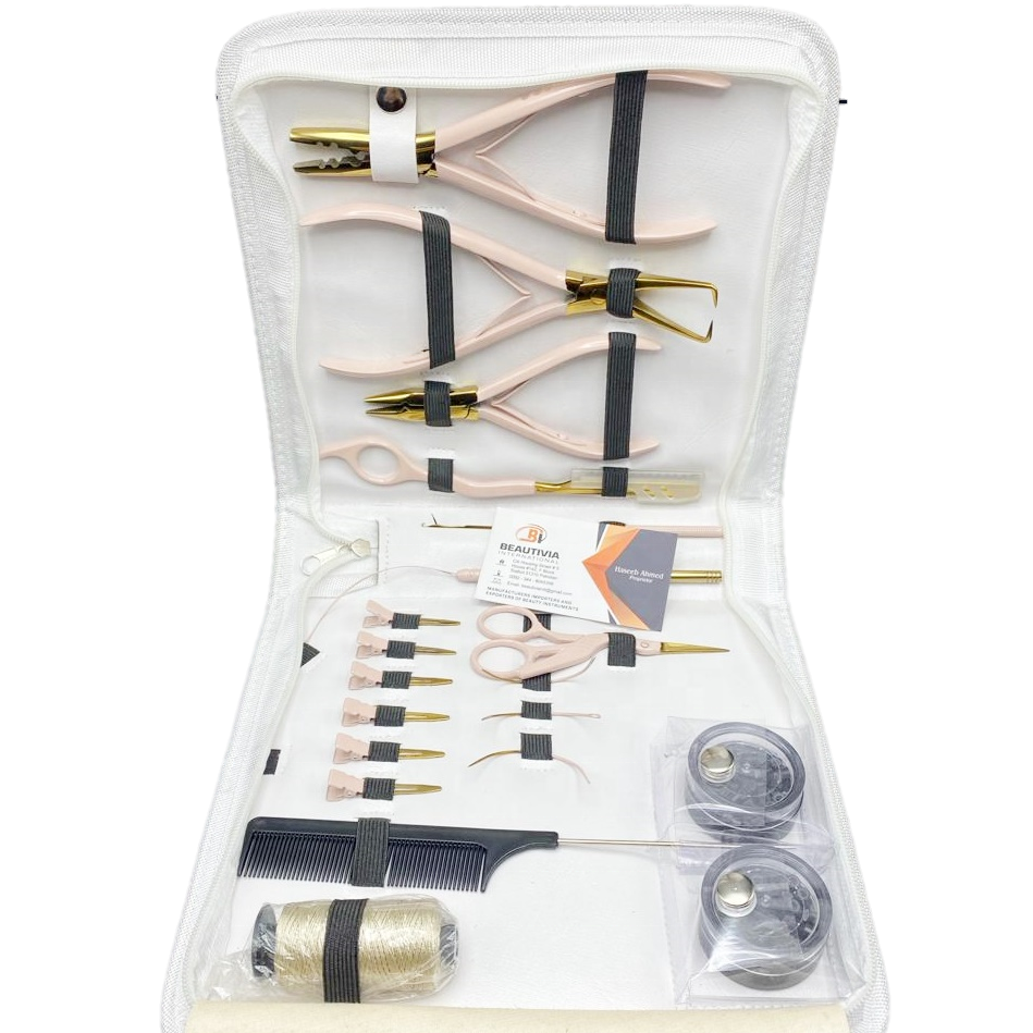 Vente en gros de kit d'outils de pinces d'extension de cheveux à micro-lien multifonctionnel durable, pince de presse à ruban avec logo personnalisé, réutilisable