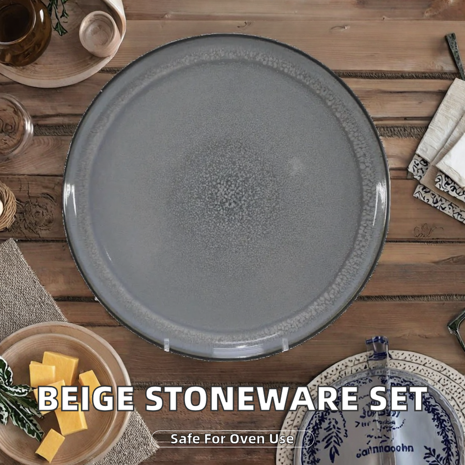 Wholesale Sustainable Reactive Glaze Foam Beige Stoneware Ceramic Dinnerware Set with 20 Plates and Bowls