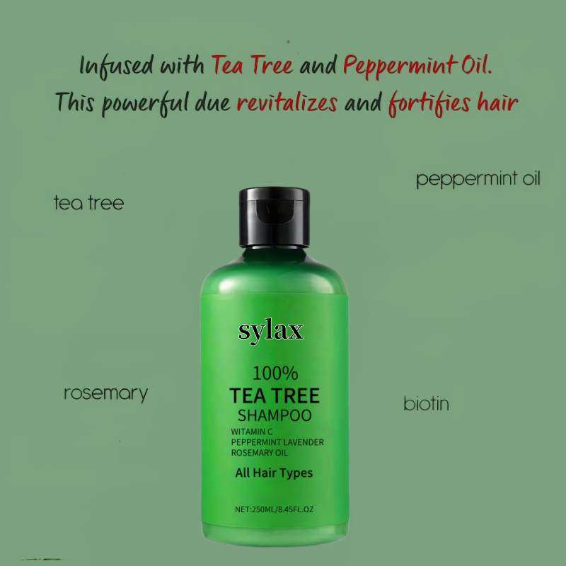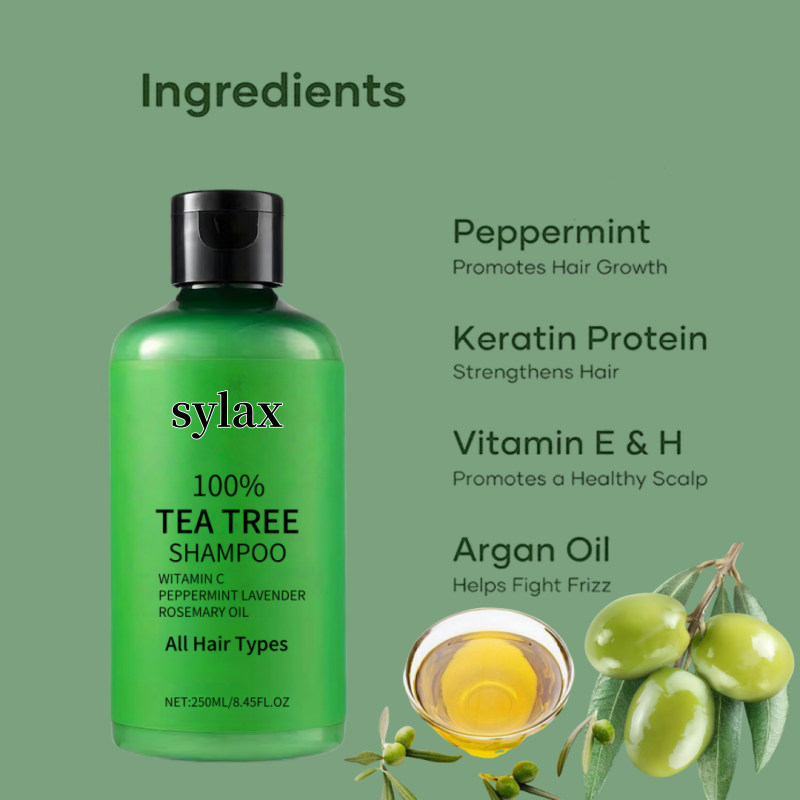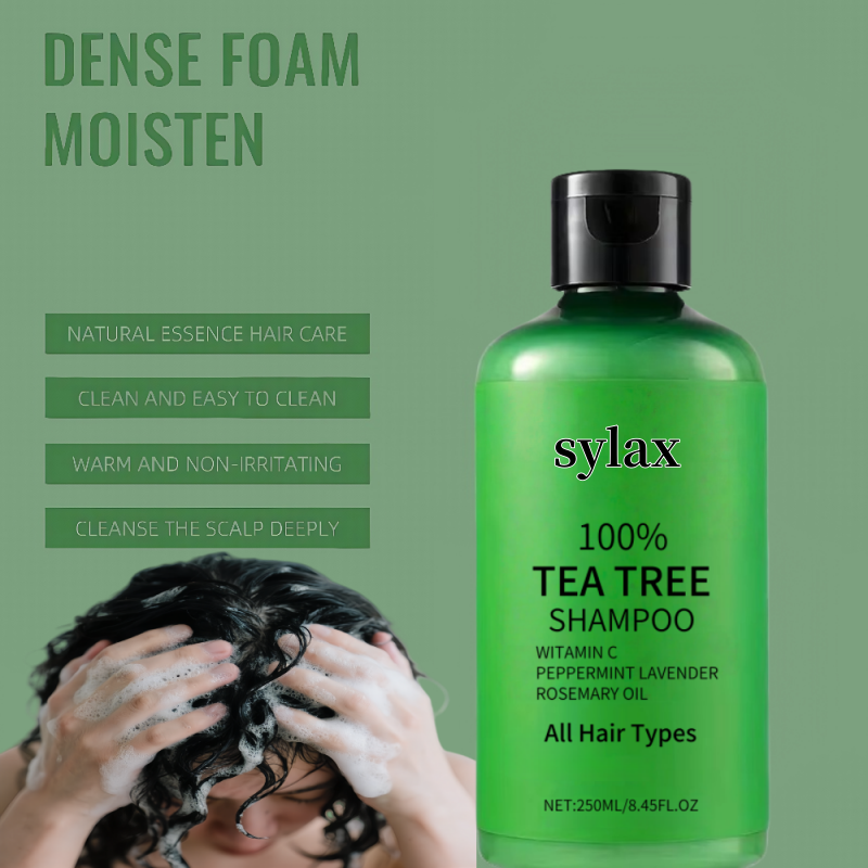 Ensemble de soins à l'huile d'arbre à thé en gros, shampoing noir pour tous types de cheveux, formule crème, soin hydratant et nourrissant pour cheveux abîmés, format voyage portable