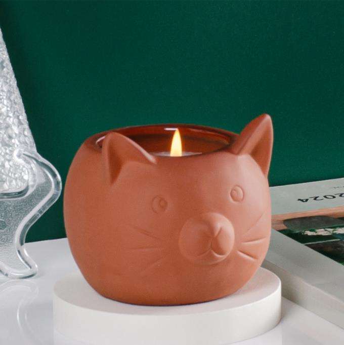 Vases, bols, pots, conteneurs, bocaux et boîtes en terre cuite faits à la main, design moderne, pour bougies de Noël en forme de chat, pour la maison, vente en gros
