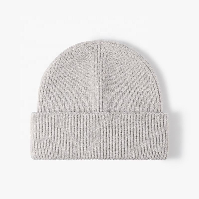 Bonnet brodé côtelé épais en vente en gros Bonnets à tricoter personnalisés Chapeaux avec logo Bonnet en acrylique jacquard à revers