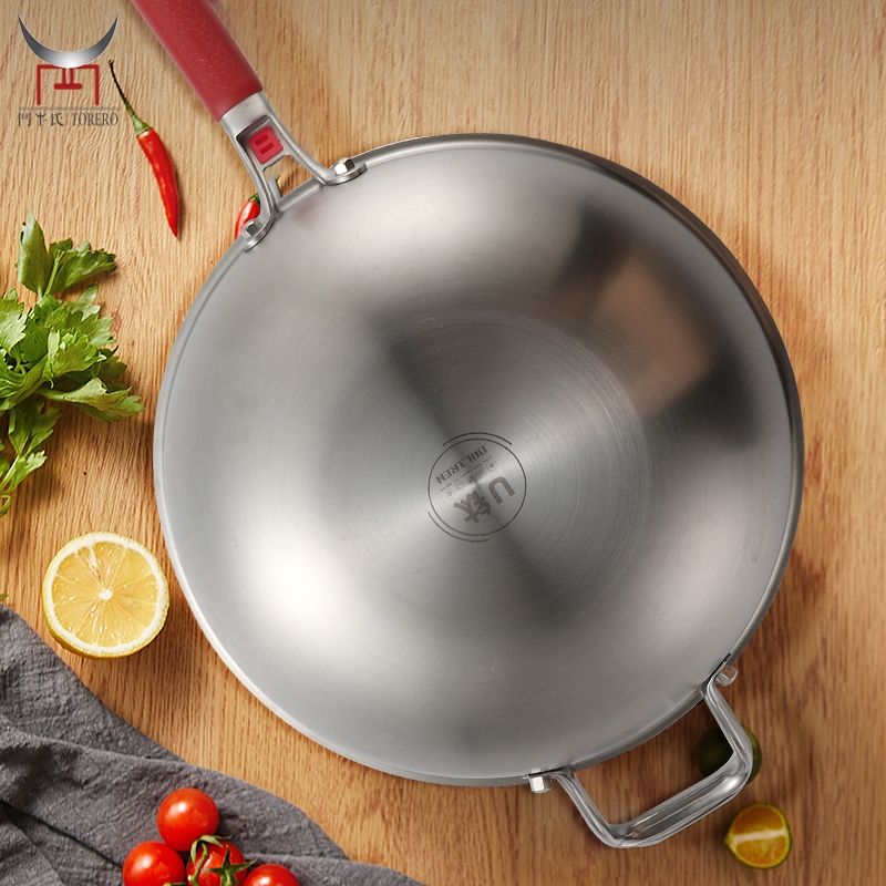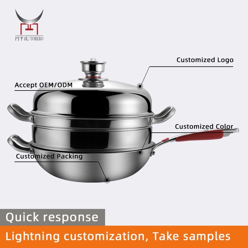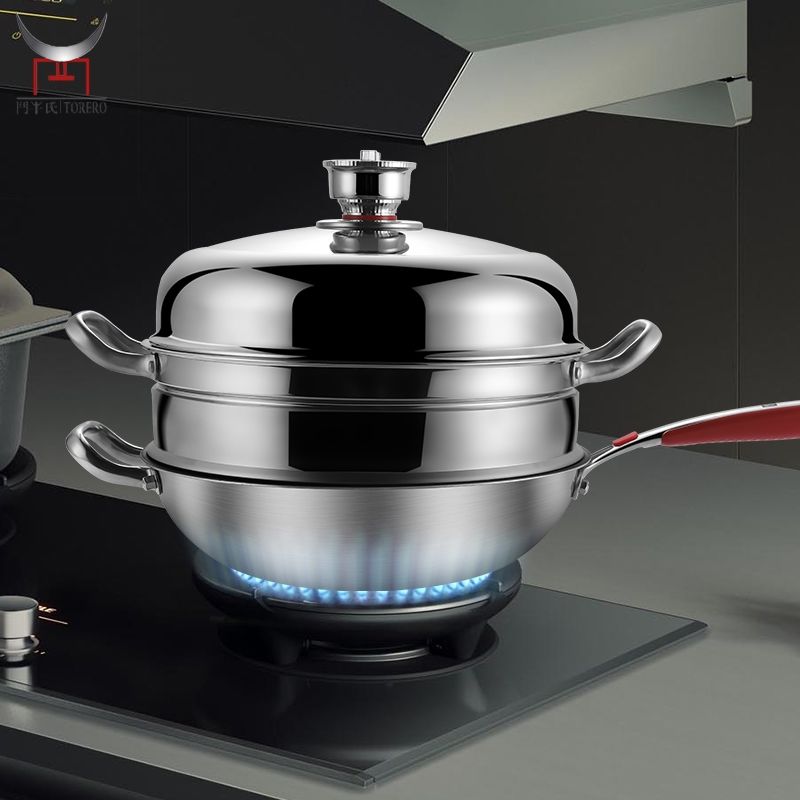 Vente en gros de poêle à frire en titane 304 sans revêtement Timerable antiadhésif avec cuiseur vapeur Ménage Cuisinière à induction Cuisinière à gaz