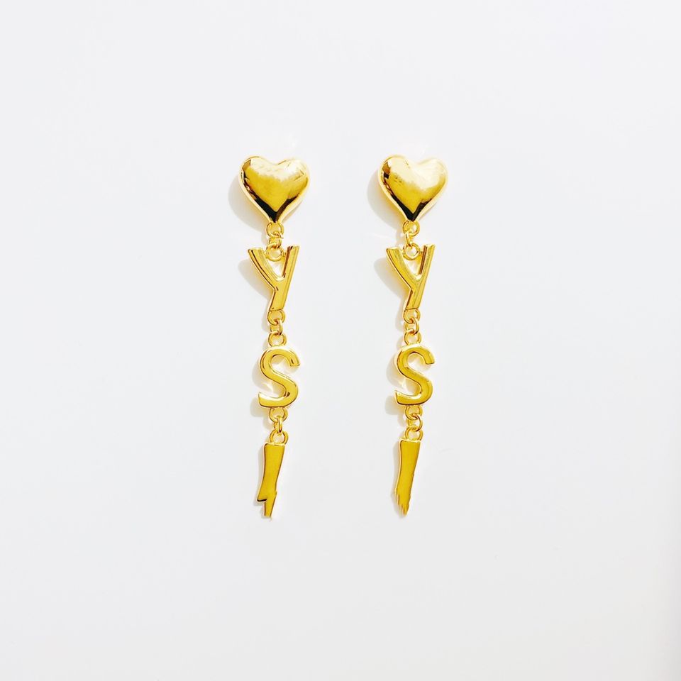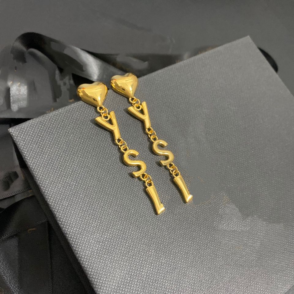 Wholesale Top Quality Luxury Jewelry Women Rhinestone Letter Hearted Pendant Drop Earrings With Famous Brands