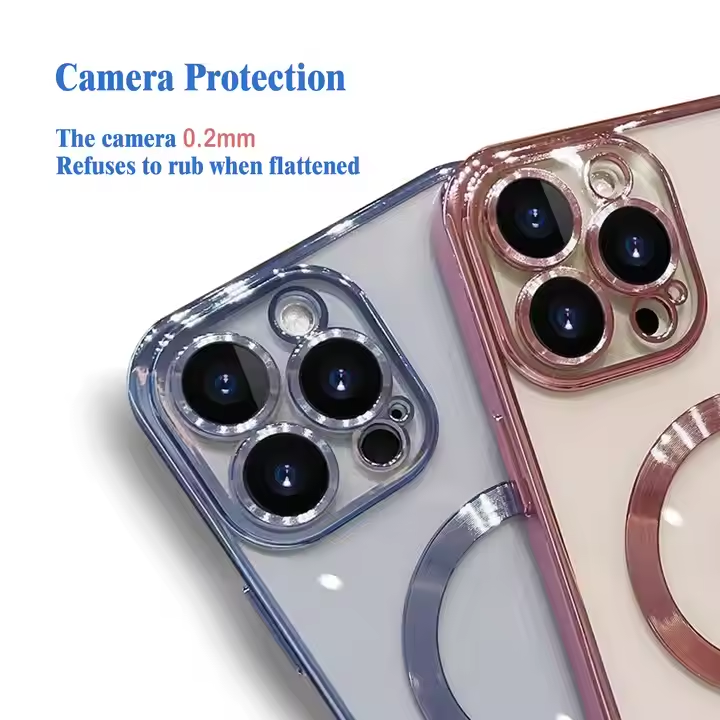 Vente en gros étui magnétique transparent en TPU galvanisé pour iPhone 15 14 13 Pro Max étuis de téléphone portable antichoc