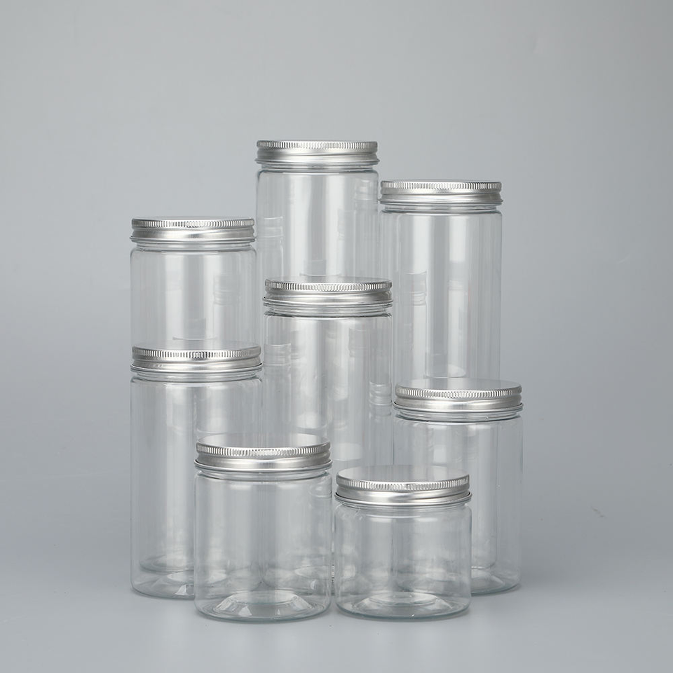 Bocaux de conservation alimentaire en plastique PET transparent en gros avec couvercles hermétiques à vis pour bonbons et sucre (couleur personnalisable)