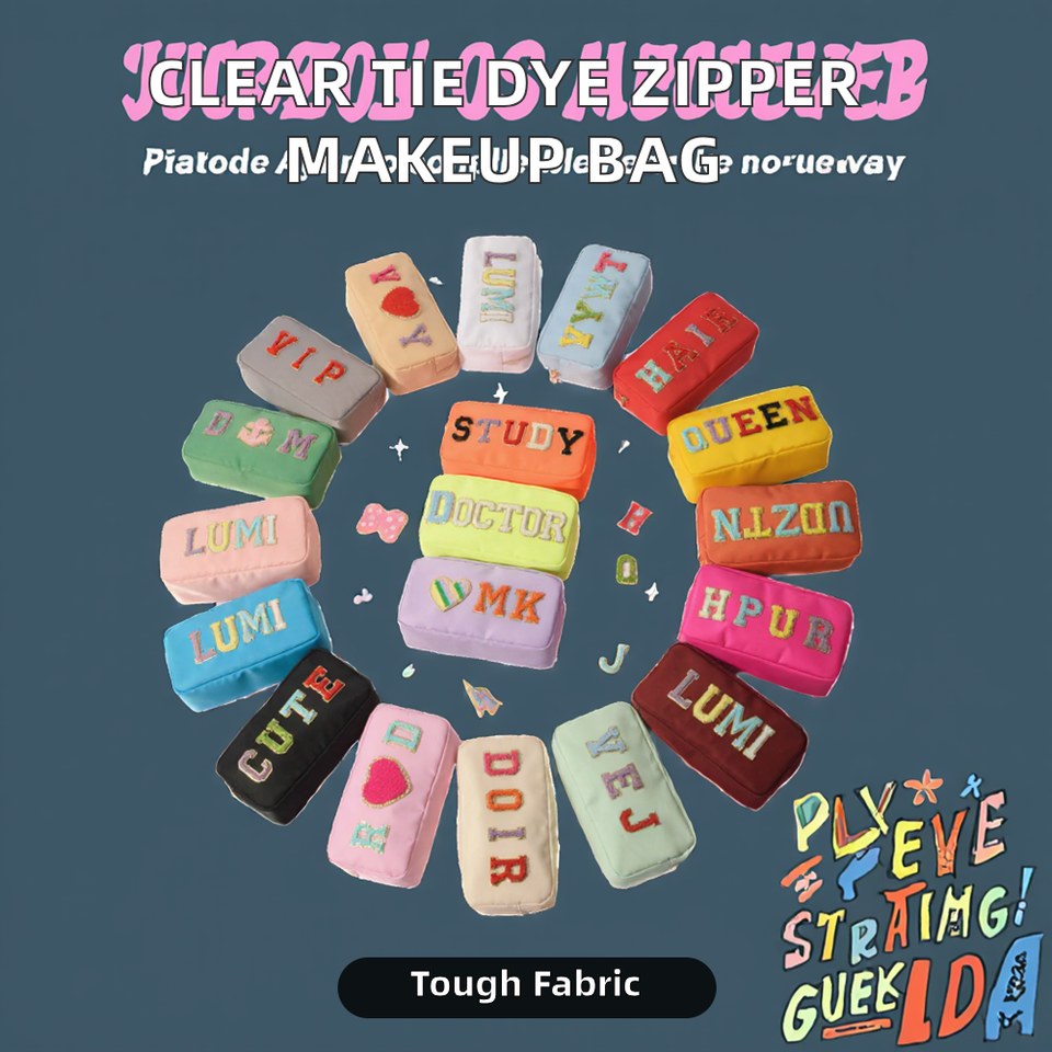 Vente en gros de pochettes transparentes à fermeture éclair en PVC et nylon 30*22*2cm pour maquillage, pochette à paillettes brodées en chenille
