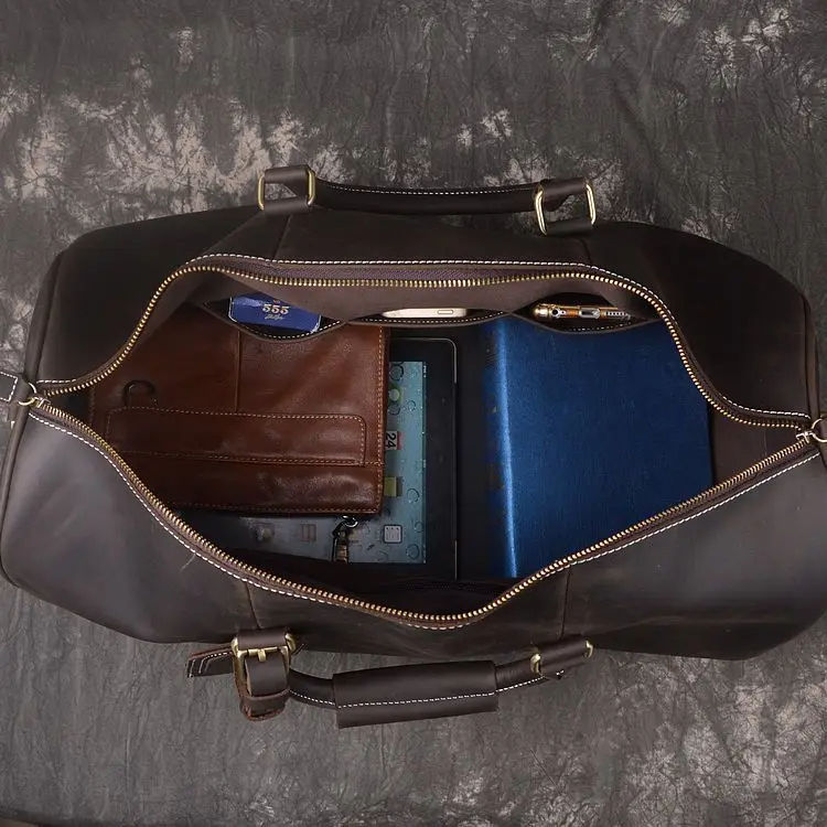 Wholesale Travel Overnight Weekend Sports Gym Duffel Carry on Bag Handmade Custom Leather Duffle Bags for Men Women
