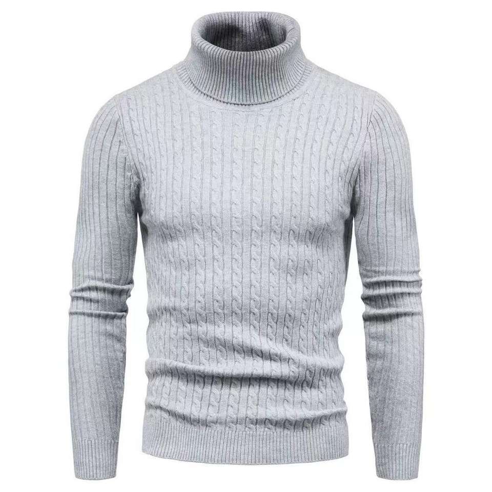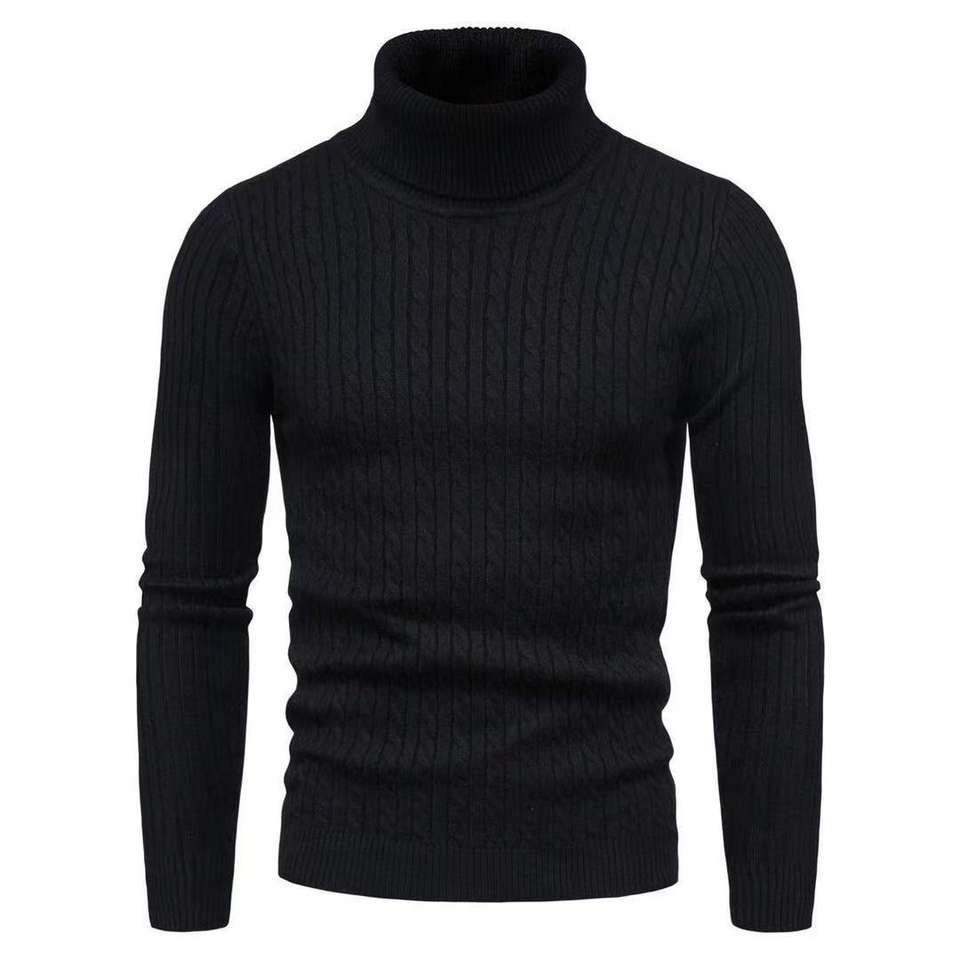 Wholesale Trendy Warm Crochet Men Cotton Soft Pullover High Neck Sweater Winter Long Sleeve Knit Men's Turtleneck Knitwear