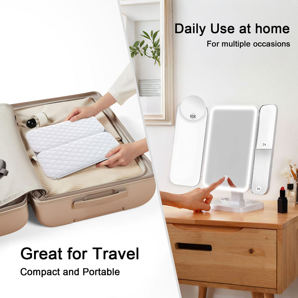 Miroir de Maquillage Trifold en Gros avec Lumières LED – Idéal pour Dortoir et Coiffeuse – Éclairage Intelligent Complémentaire pour Sublimer Votre Visage