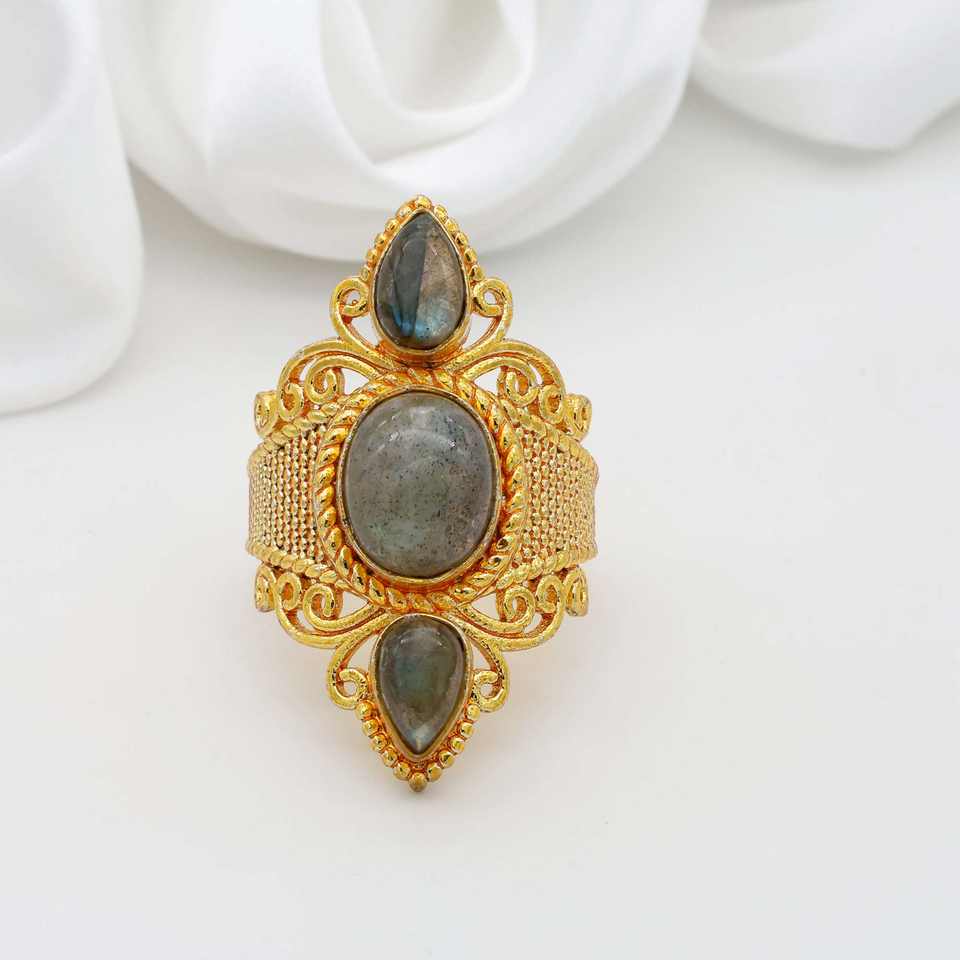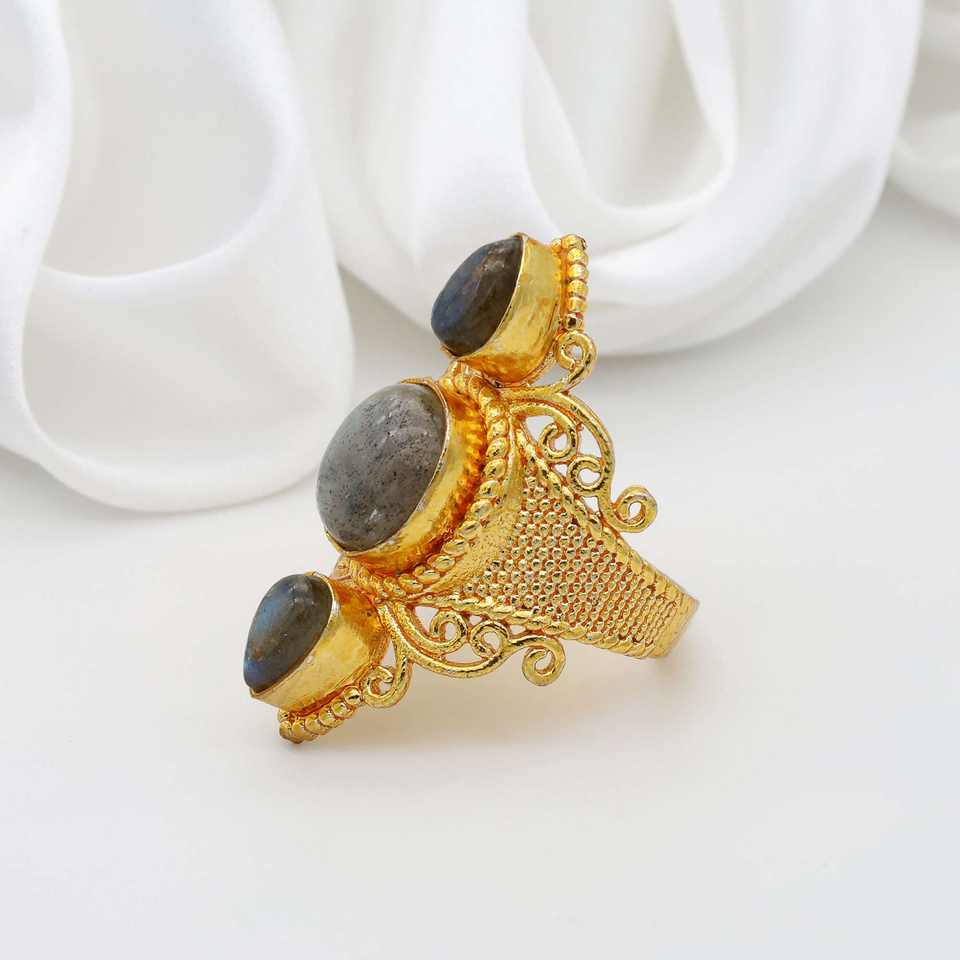 Vente en gros de bague de mode faite à la main triple Labradorite bleue ovale en forme de poire, pierre précieuse, cadeaux personnalisés pour maman