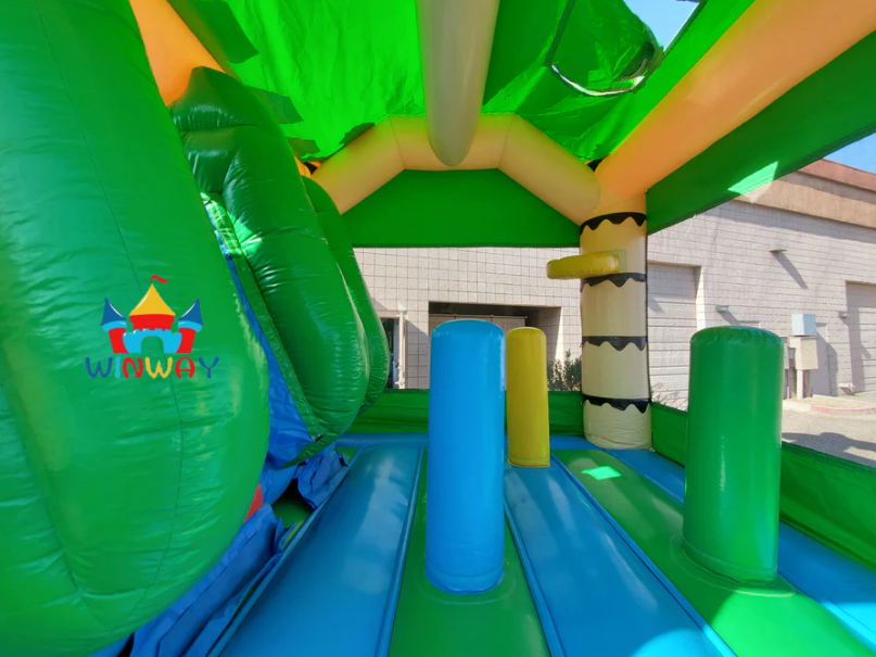 Maison de rebond gonflable tropicale en gros avec toboggan pour les fêtes d'enfants, le plaisir de l'arrière-cour, les jeux d'eau d'été et les célébrations du jardin