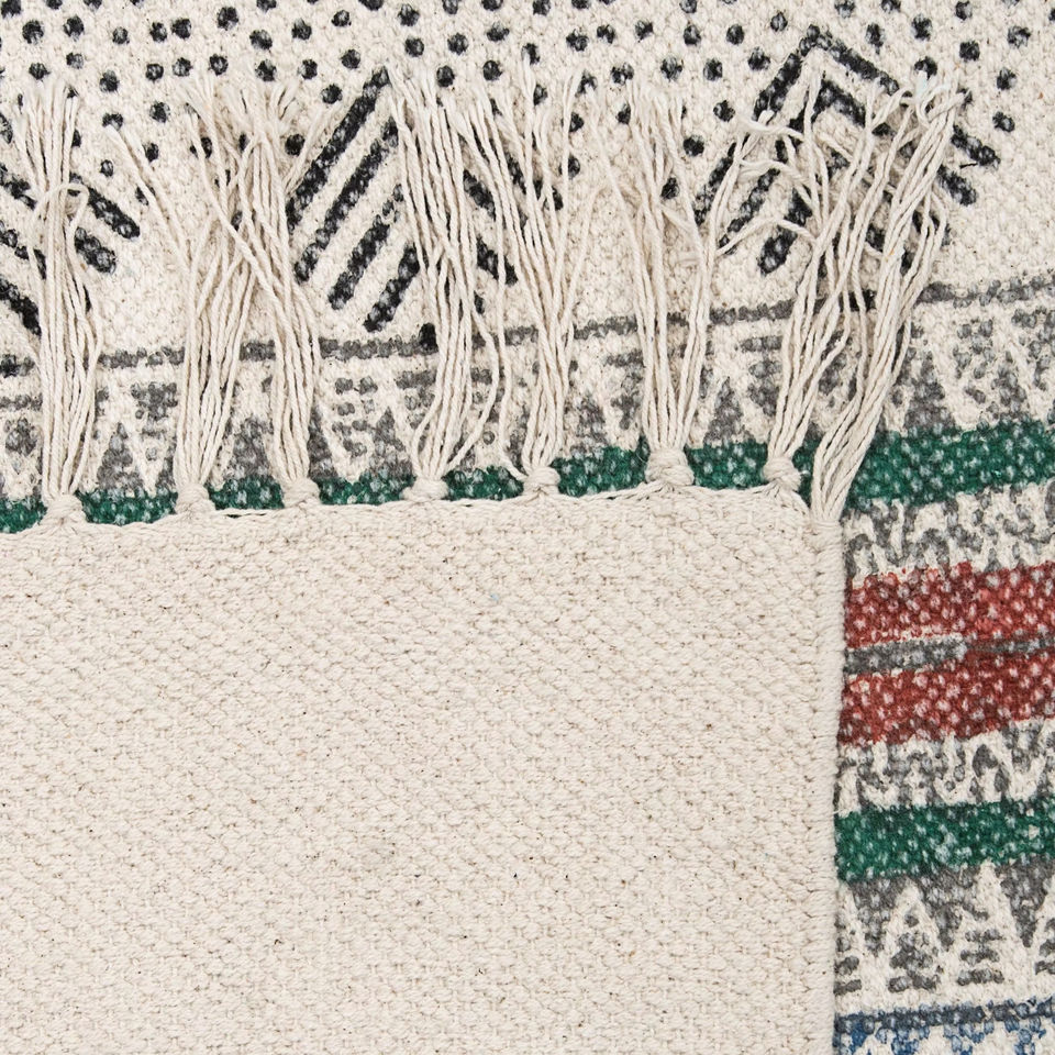 Lavable, Antidérapant, ACCEPTANT les animaux domestiques, Block-Printed Cotton Dhurry