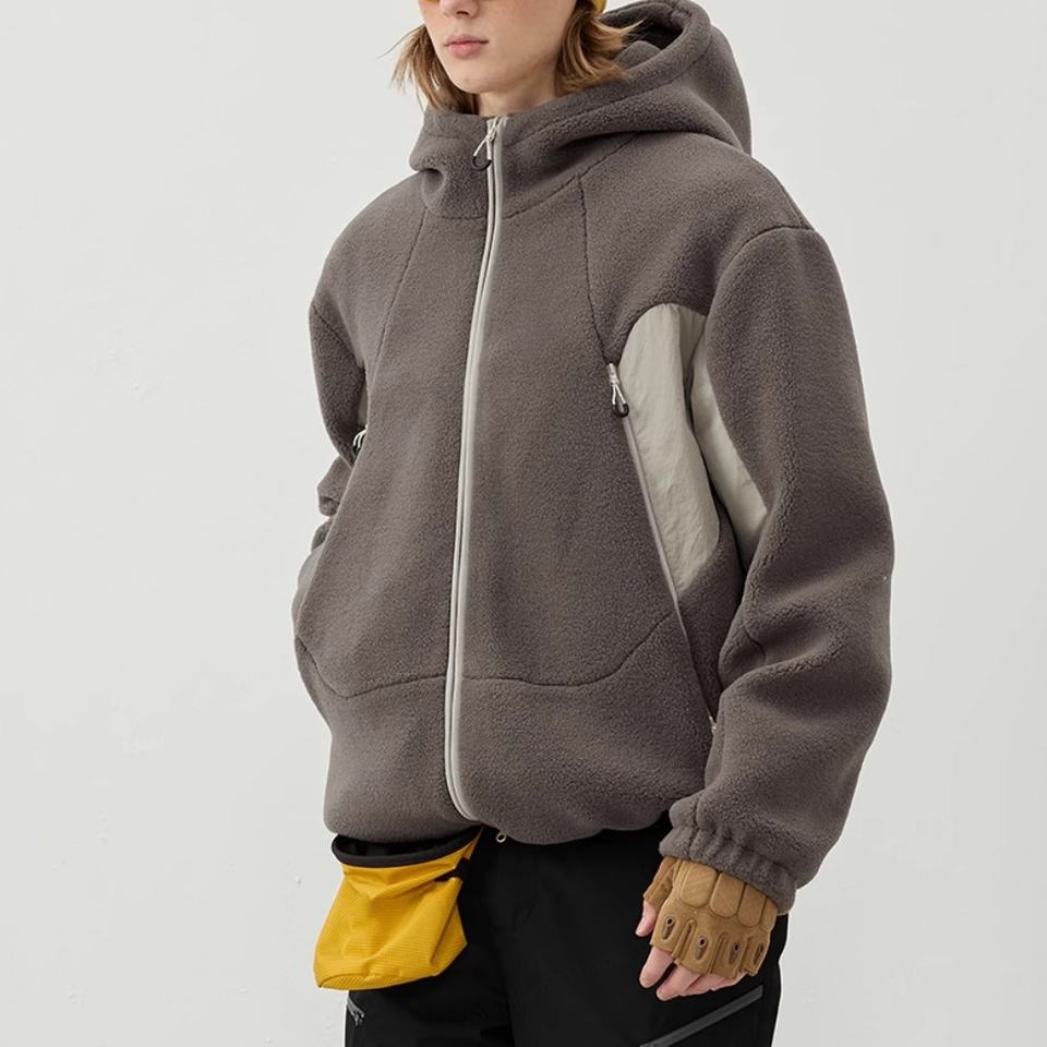 Blouson d'hiver unisexe en polaire épaisse et chaude avec fermeture éclair bidirectionnelle, coupe ample, en peau d'agneau, pour homme, vente en gros