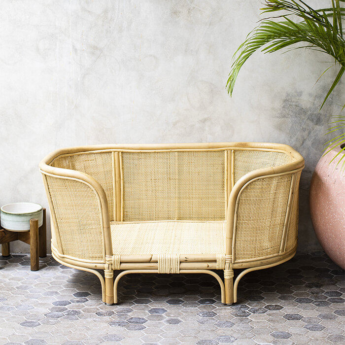 Chien lit en rotin