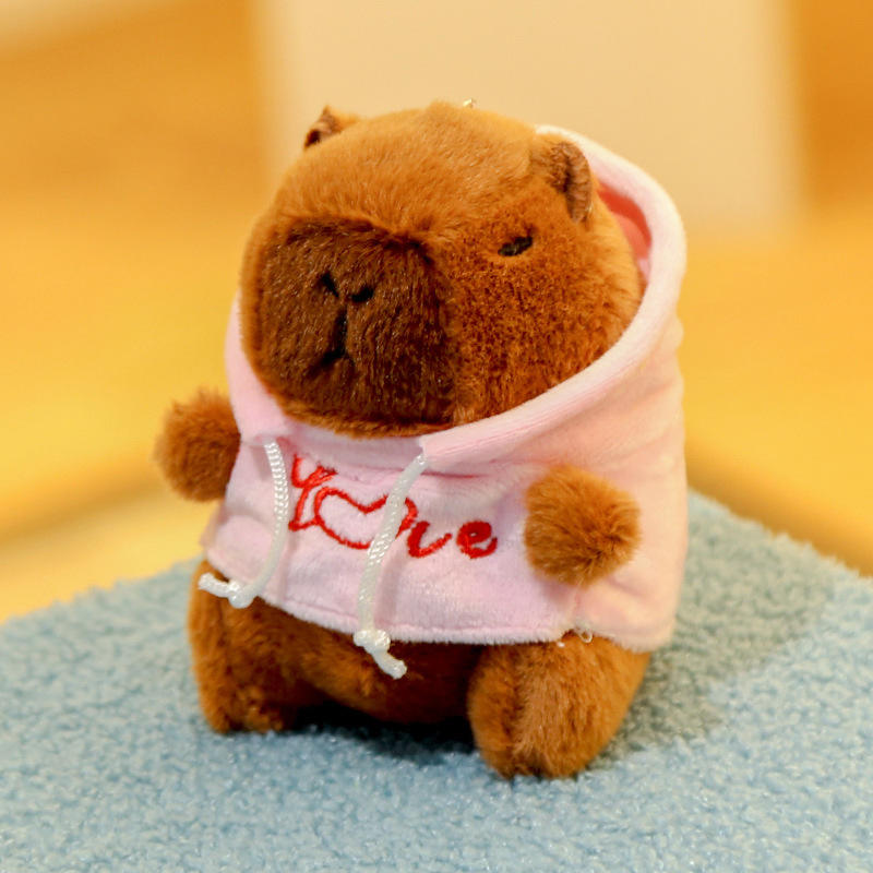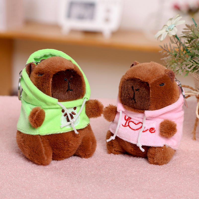 Wholesale Unisex 12cm Kawaii Colorful Cotton Hoodie Capybara Plush Keychain Soft Cartoon Plushies Pendant Claw Machines Stress