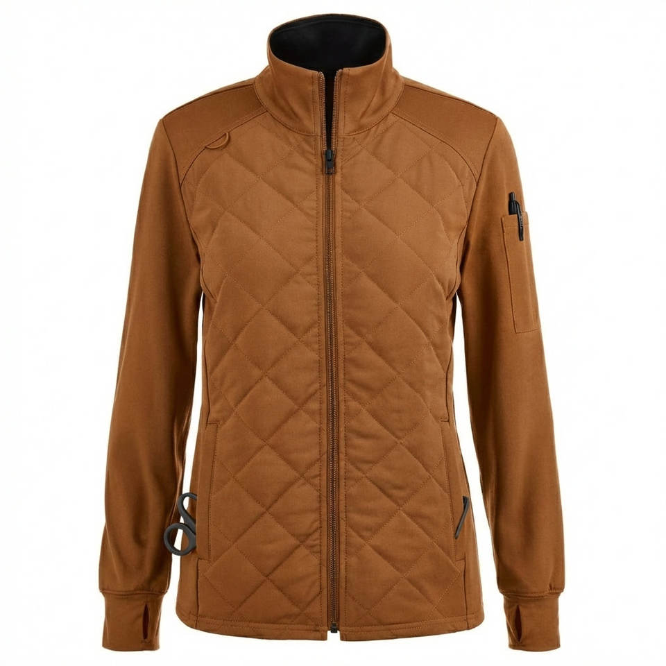 Blouse médicale matelassée unisexe personnalisée pour femme, uniforme d'infirmière, veste de médecin à fermeture éclair intégrale, coupe ajustée, pour hôpital, vente en gros