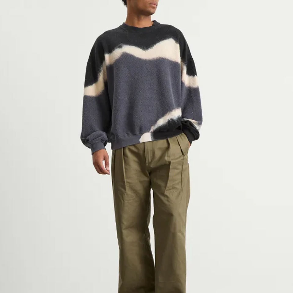 Sweat-shirt unisexe surdimensionné à motif ondulé, col rond, brodé, style décontracté, motif uni, style moderne, streetwear
