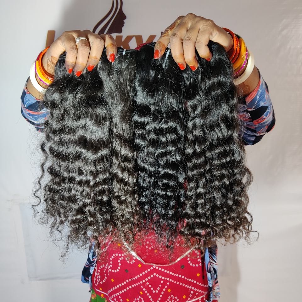 Faisceau brut de couleur noire non traitée aligné sur les cuticules Machine Double trame lâche vague profonde ondulée Extensions de cheveux humains du temple indien