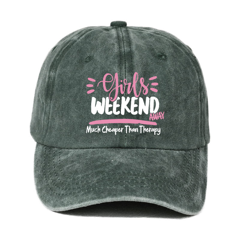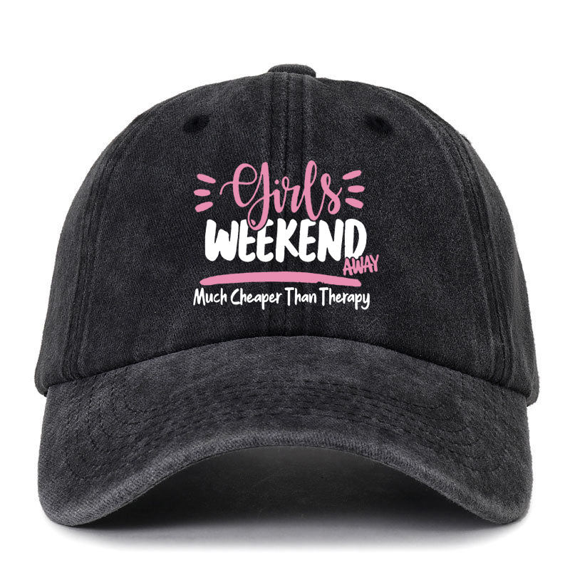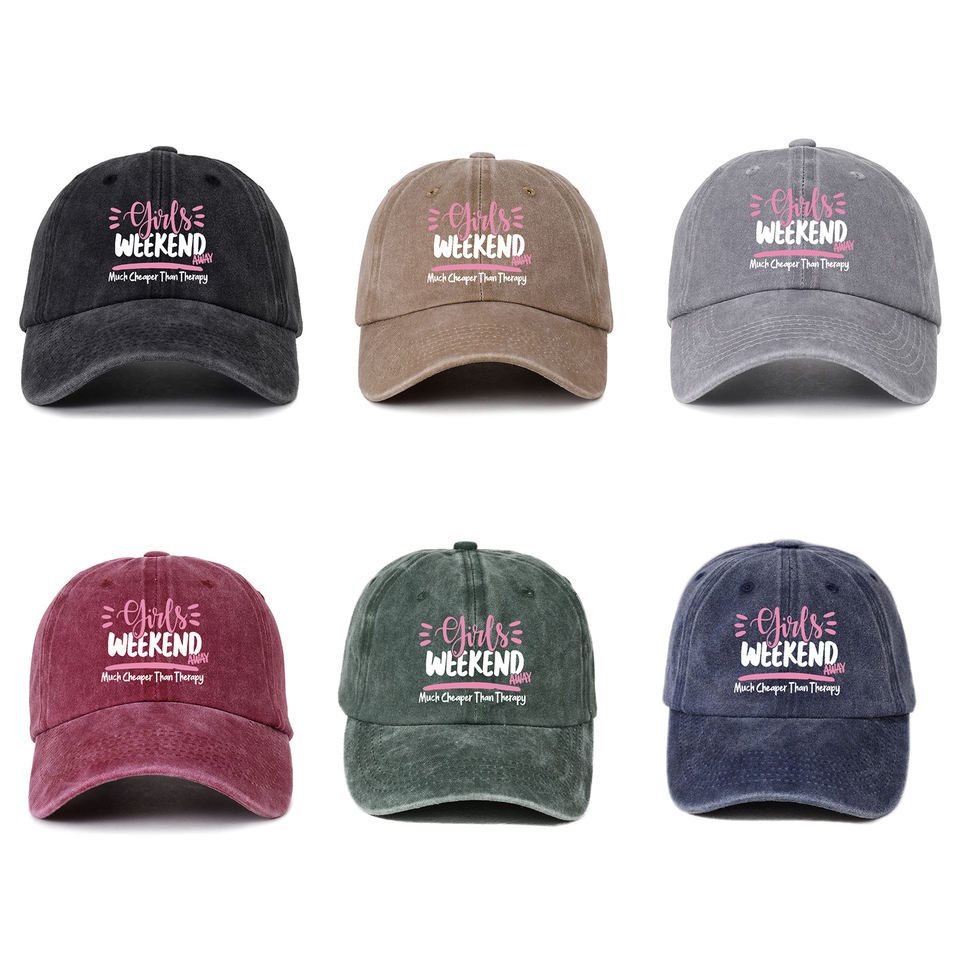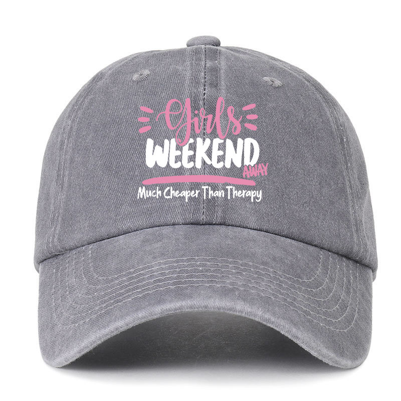 Vente en gros Casquette de baseball non structurée Chapeau de soleil en denim délavé à 6 panneaux avec logo «Girls Weekend» Style sportif pour cadeaux de vacances