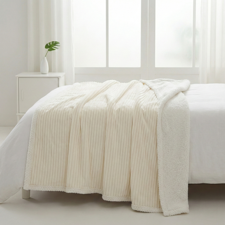 Nom du produit:Couverture en flanelle côtelée jacquard 3D rayée, doublée en velours Shu.