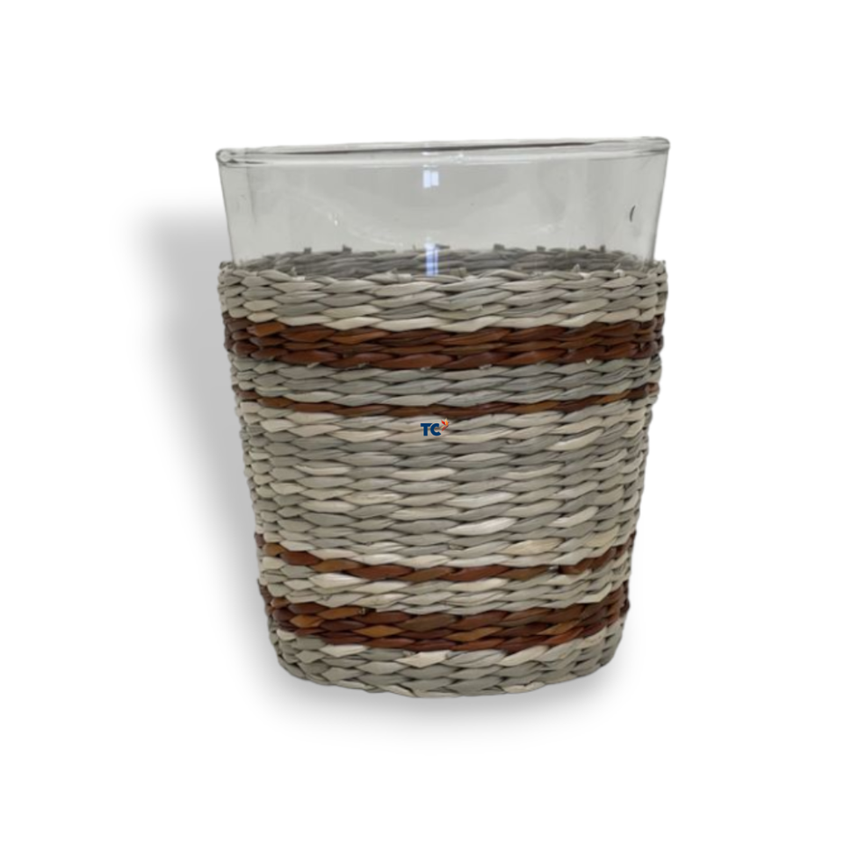 Wholesale Vietnam Minimal Design Modern Trend Seagrass Wrapped Drinking Glass