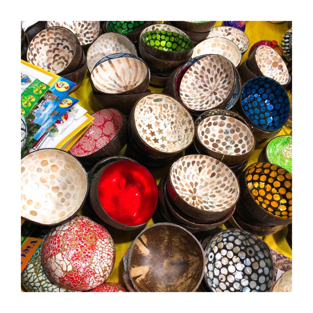 Vente en gros de coquille de noix de coco naturelle vietnamienne bol de coquille de noix de coco naturelle parfaitement polie saladier bol de noix de coco cuillère et fourchette