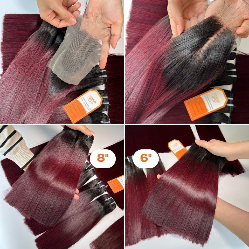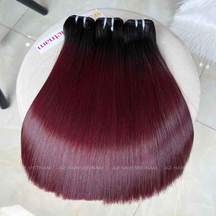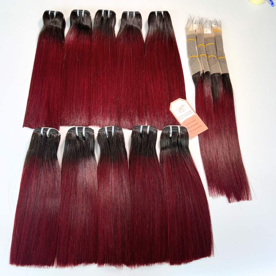 Vente en gros de paquets de cheveux humains Remy vietnamiens colorés pour Ombre Bugundy racine foncée os droit cheveux Remy de haute qualité