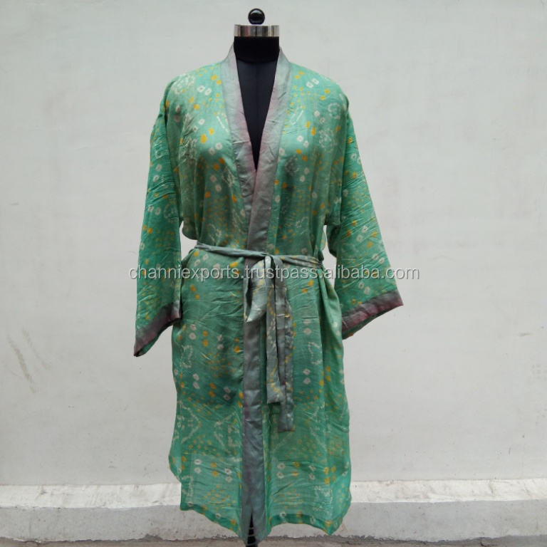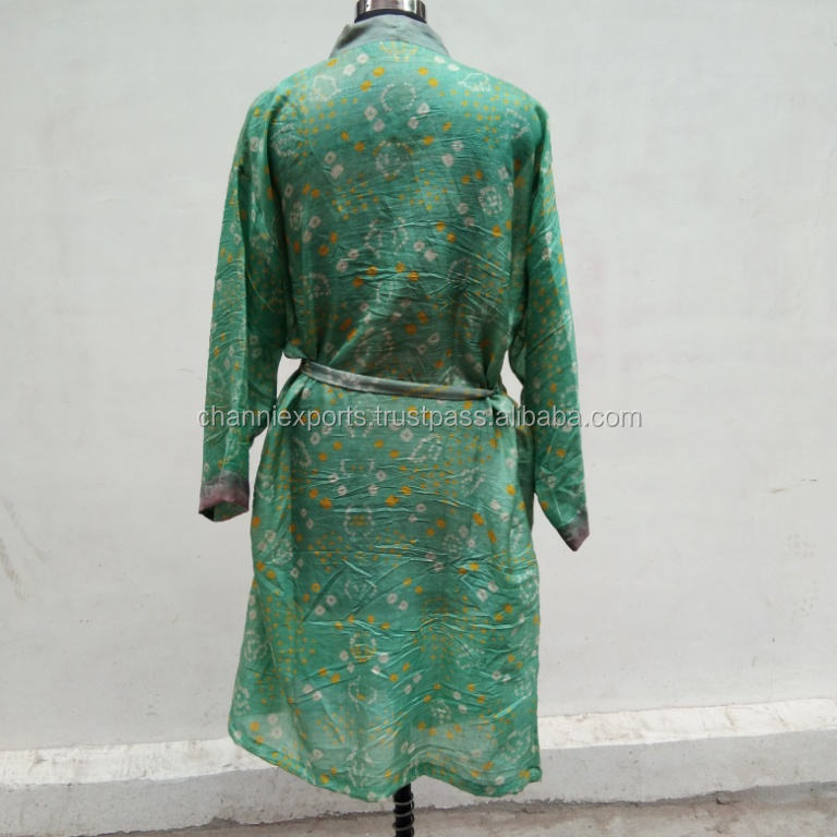Wholesale Vintage Silk Saree Women Nightwear Beachwear Bathrobes Kimonos for Beach Wear Indoor Floral Printed Cotton Kimono