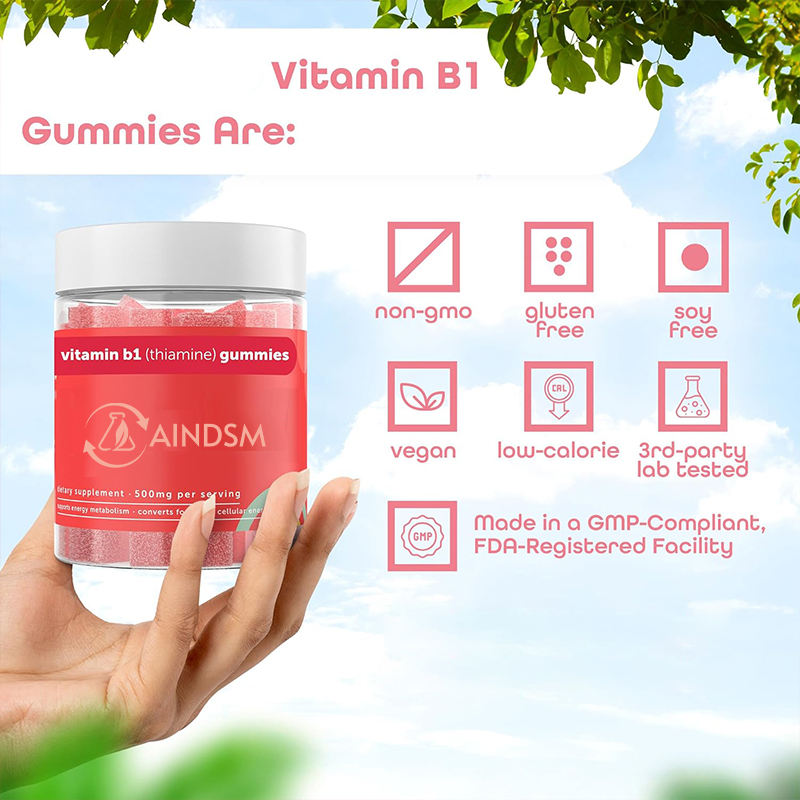 Gummies de vitamine B1 en gros : Soutien au métabolisme énergétique, vitamine B1 sous forme de gomme, vitamine thiamine pour améliorer le bien-être général