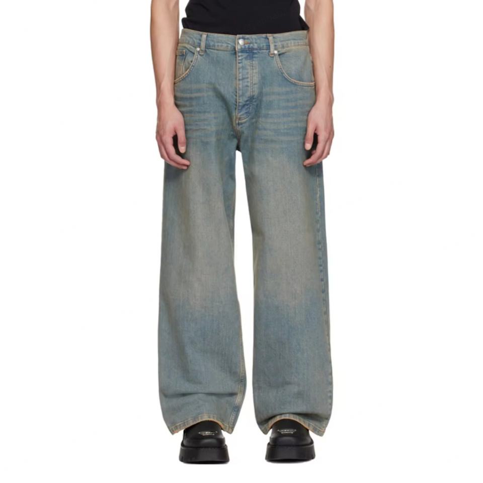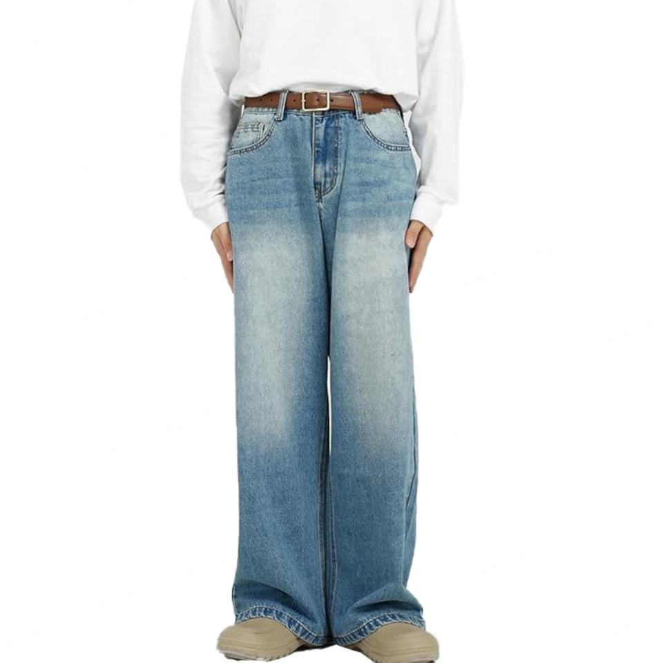 Jean baggy classique pour homme, délavé, avec rivets, taille mi-haute, 5 poches, coupe oversize, en denim, collection printemps, vente en gros