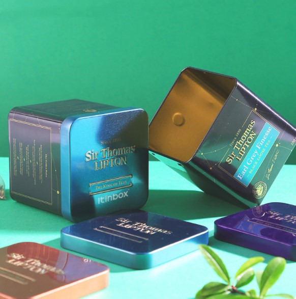 Square black tea tins