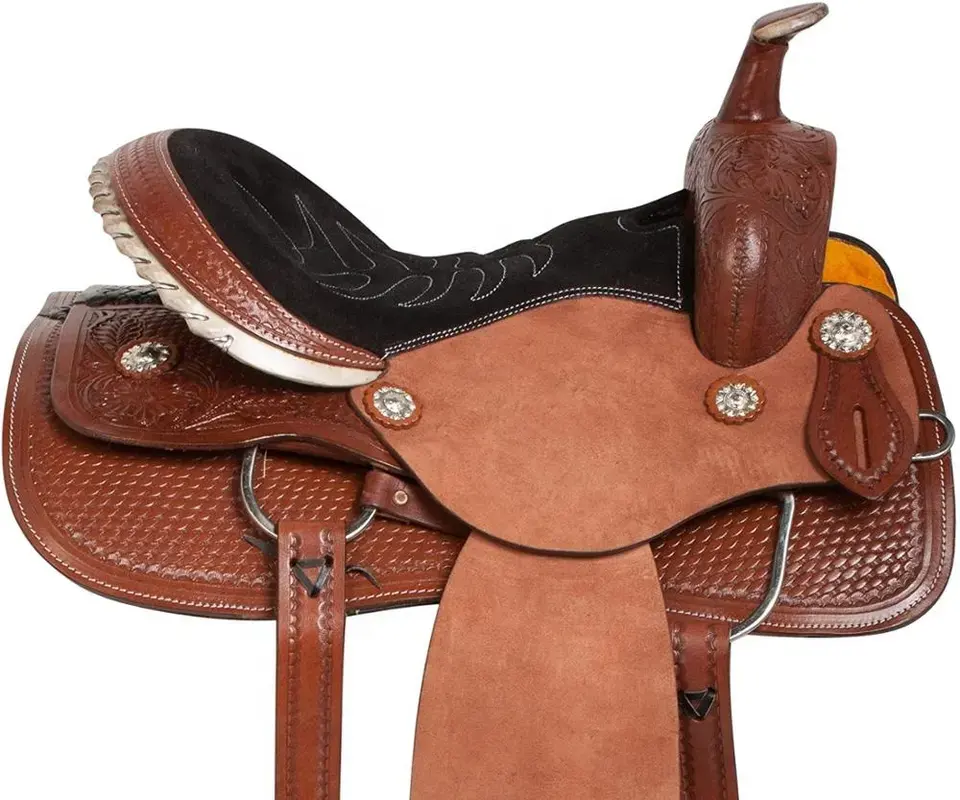 Selle de cheval western en cuir véritable, faite à la main, importée, pour le saut d'obstacles, l'endurance, l'équitation western, vente en gros