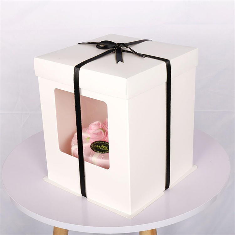 Boîte à Gâteau Carrée Haute Blanche et Rose en PET PVC 12x12x12 Pouces de Qualité Alimentaire avec Revêtement UV et Plioirs Recyclable en Gros