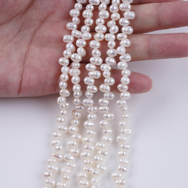 Wholesale White Freshwater 4.5-5mm Rice Shaped Pearl Necklace Head Hole DIY Semi-Finished Accessory Loose Pearls String
