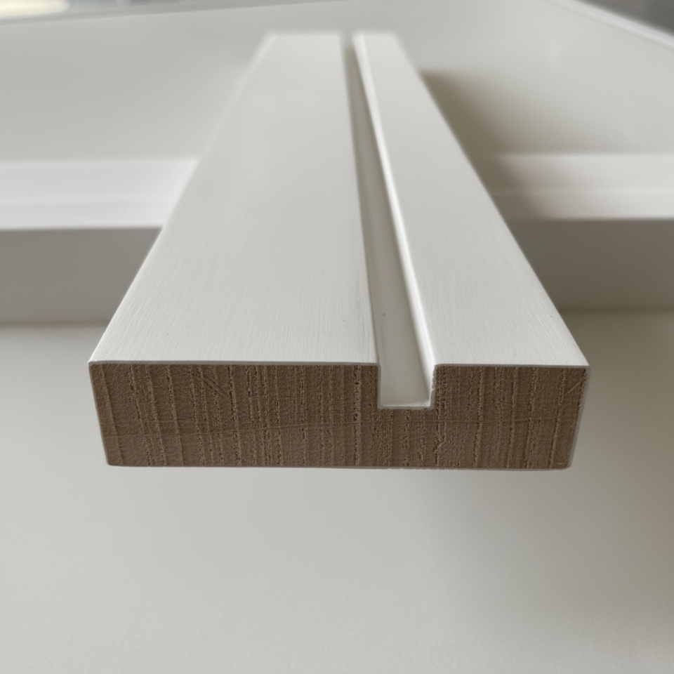 Vente en gros Moule mural en pin radiata apprêté blanc Décoration S3S Panneau collé avec rainure