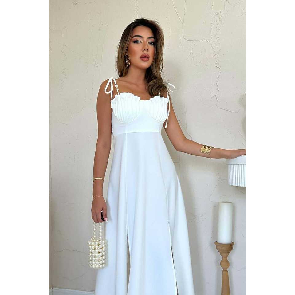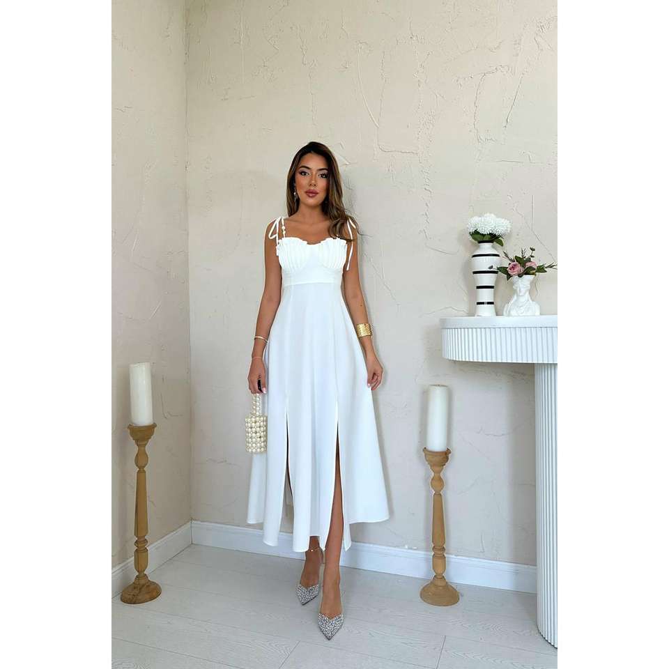 Wholesale White Satin Floor-Length Evening Dress XL Size A-Line Silhouette with Bust Cups Romantic Luxury Party Style with Slit