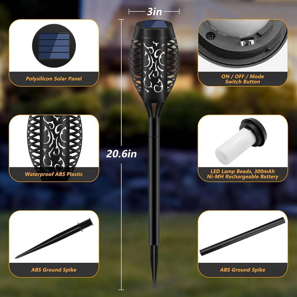 Lampes solaires miniatures 12 LED en gros, étanches IP65, haute luminosité, allumage/extinction automatique, torche de jardin extérieure, sécurité à effet vacillant