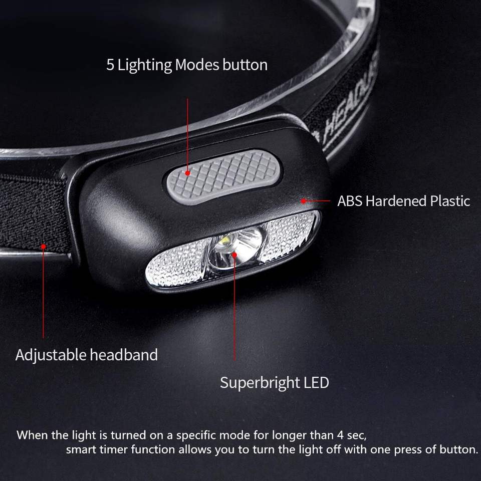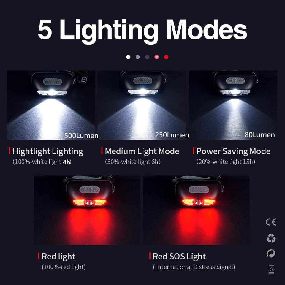 Lampe frontale LED portable 1 pièce avec capteur, rechargeable par USB, batterie intégrée, pour camping en extérieur