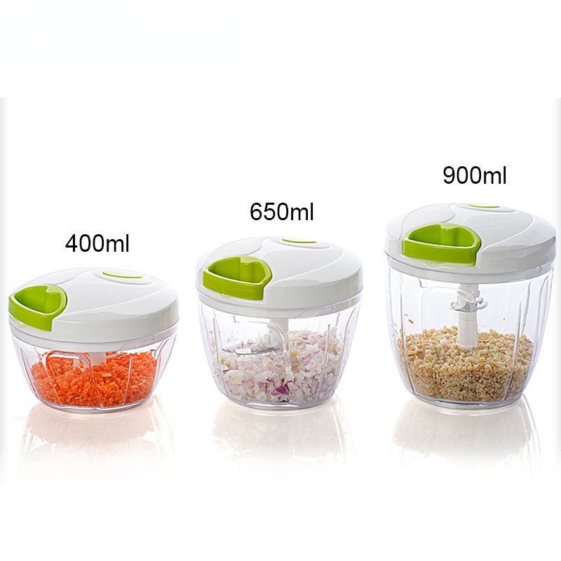 Vente en gros d'accessoires de cuisine, hachoir manuel en plastique de 400 ml pour l'ail et les légumes, pour un usage domestique