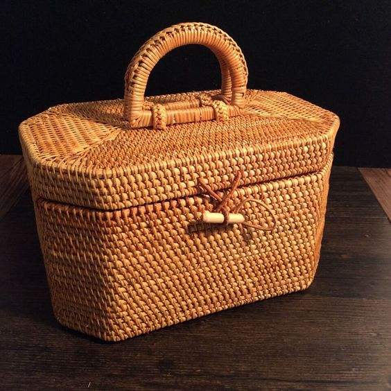 Vente en gros Boîte de rangement pour bijoux en rotin faite à la main en osier Boîte à bijoux en rotin de paille Boîte de rangement pour organisateur de bijoux en osier