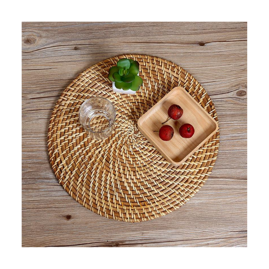 Vente en gros de sets de table en rotin et osier pour la salle à manger, sous-verre en bambou tissé à la main, tapis pour tasses à thé, assiette en rotin pour la cuisine de mariage