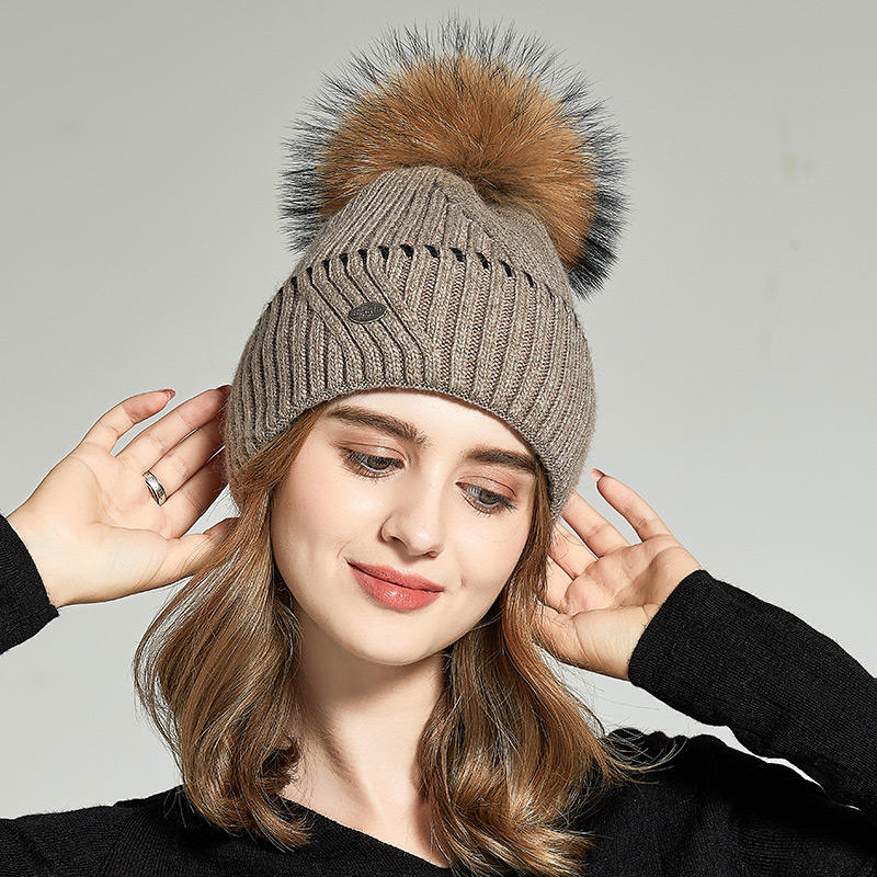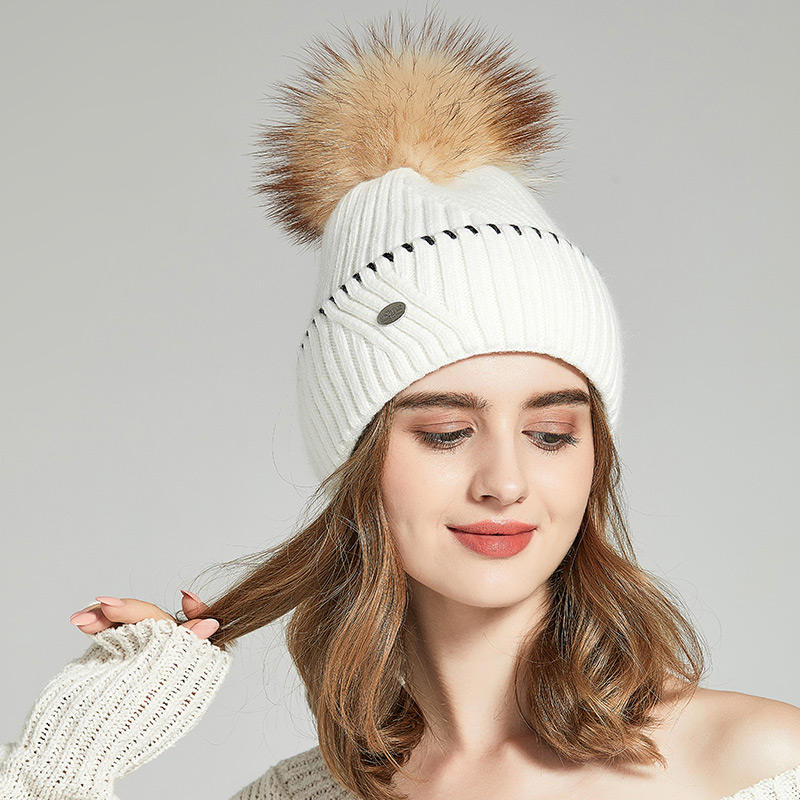 Product name:Winter Real Fur Pom Pom Stripes Beanie Hat