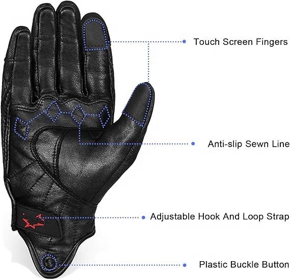 Gants de moto à écran tactile en cuir de chèvre pour hommes, légers, avec logo personnalisé, pour l'équitation et le motard, vente en gros