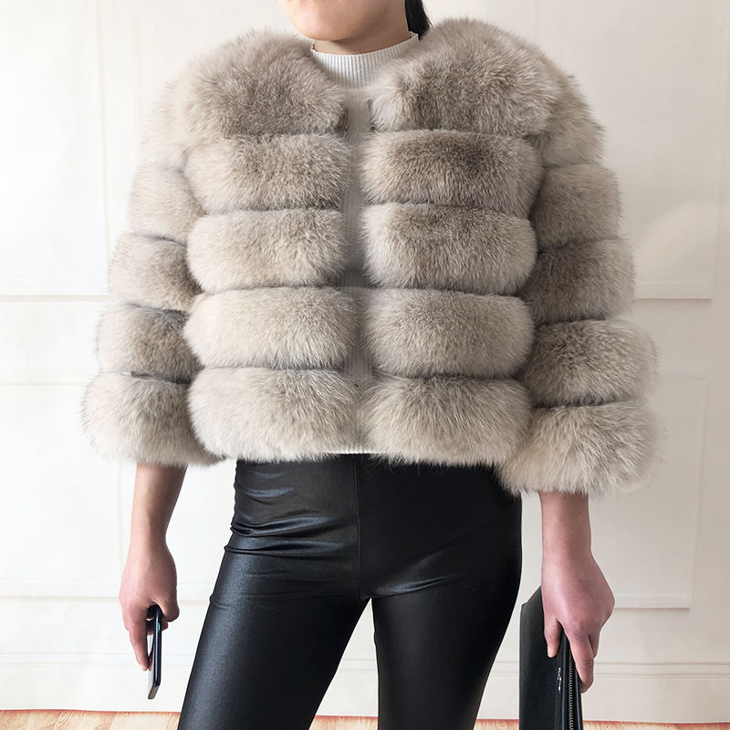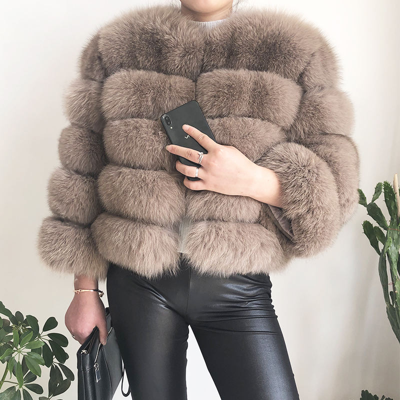 Veste Courte en Fourrure Naturelle de Renard de Luxe Grande Taille pour Femme Hiver, Vente en Gros