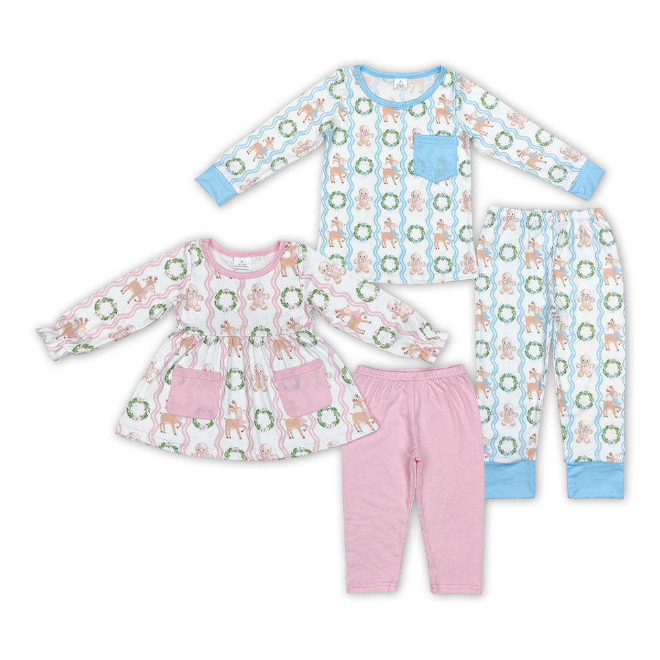 Wholesale Casual Winter Outfit for Little Girls Kids Christmas Cute Leopard Print Long Sleeve Tunic Top Pink Leggings Set