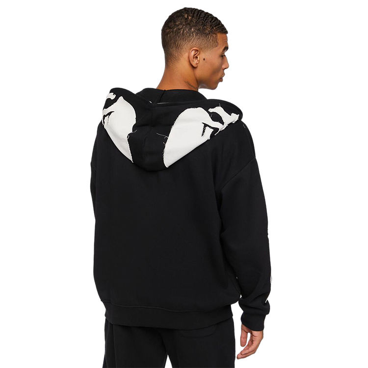 Sweat-shirt à capuche surdimensionné sans poche pour homme, motif squelette, noir, personnalisé, fermeture éclair complète, hiver, vente en gros